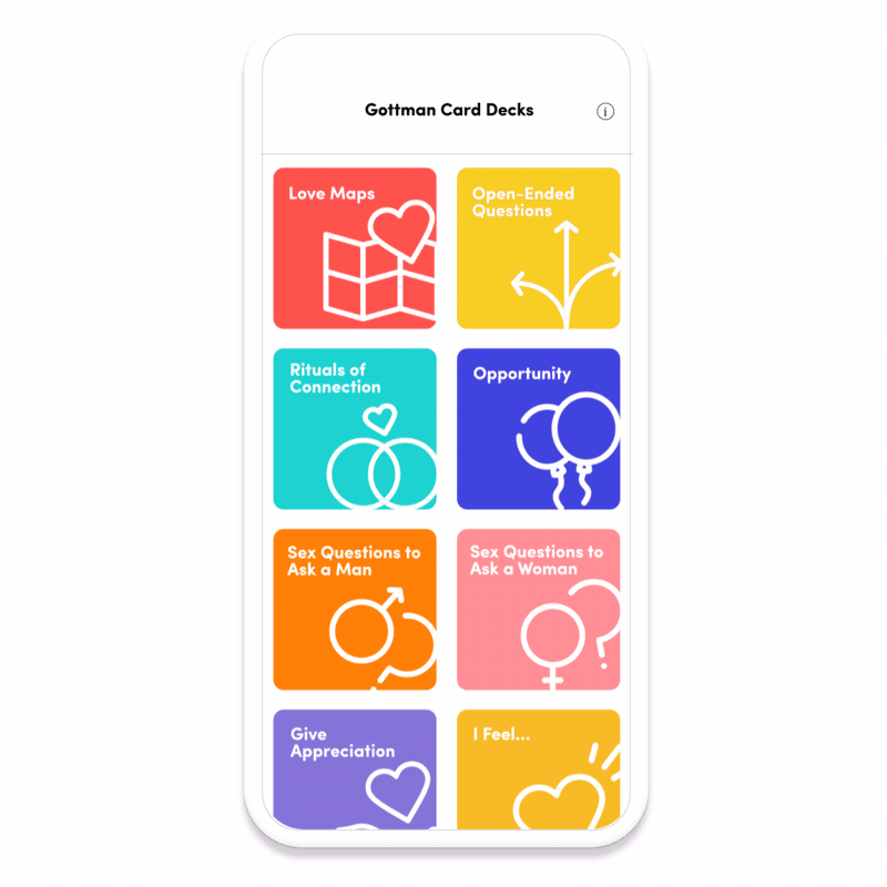 Remember, you’re creating a real life story together and it’s important to stay connected around topics of values, ethics, and spirituality. There are lots of ways we make meaning of our life and the masters at long-term relationships do a great job creating that together. Start these conversations with the Open-ended Question and Love Map card decks.